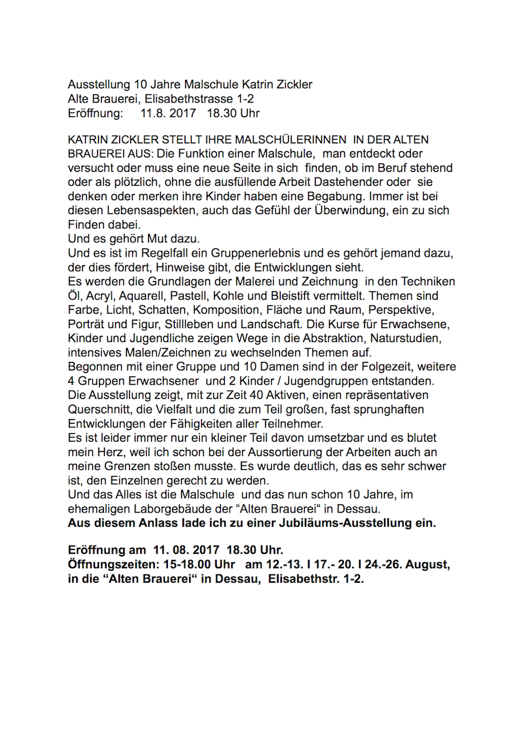 Mit dieser Datenschutzerklärung gem. Art. 13 der Europäischen Datenschutzgrundverordnung (DS-GVO) kläre ich Sie über den Umgang mit personenbezogenen Daten auf, die beim Besuch und der Nutzung meiner Websites katrin-zickler.de und malschule-zickler.de erhoben werden.